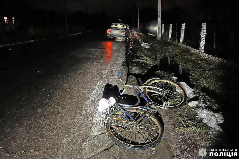 Встановлено, що на неосвітленій ділянці дороги 23-річний місцевий житель, керуючи автомобілем «ВАЗ 2107», допустив наїзд на пішохода, який ішов проїзною частиною у попутному напрямку із велосипедом в руках.