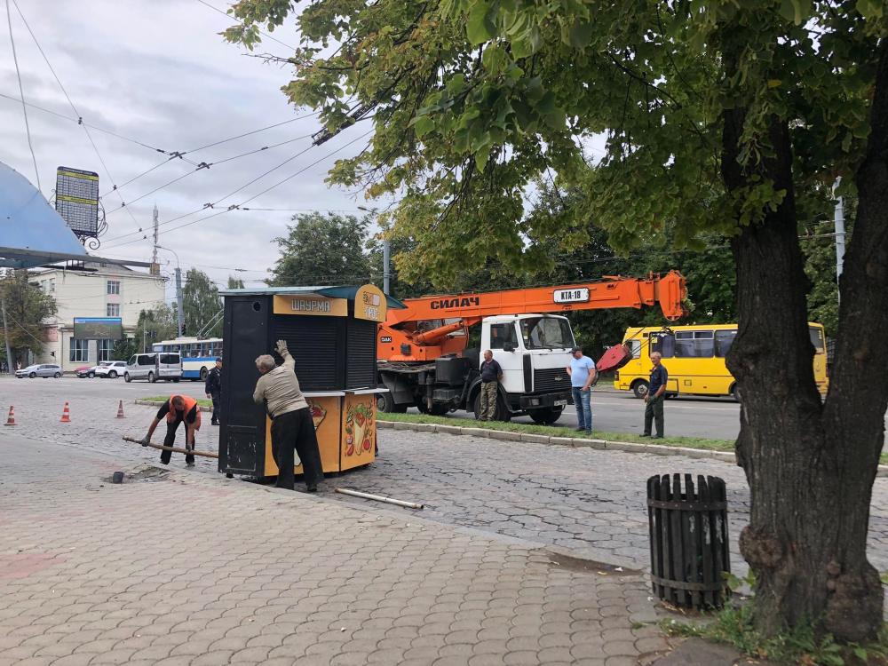У Рівному продовжується демонтаж незаконно встановлених тимчасових споруд для ведення торгівлі. Зокрема, сьогодні, 1 серпня, на вулицях Рівного їх поменшало. Свою діяльність завдяки приписам та техніці припинили кіоски із шаурмою на вулиці Княгині Ольги та із кавою на вулиці Коперника.