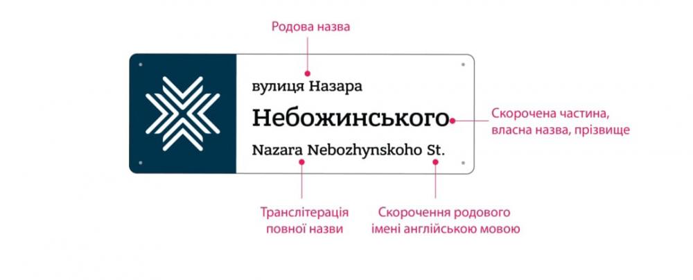 Тепер під час розміщення адресних покажчиків треба на них треба вказувати назву вулиці латиницею та кирилицею. А також на них, за пропозицією автора проєкту Анастасії Кулакевич, пропонують додавати елементи бренду міста.