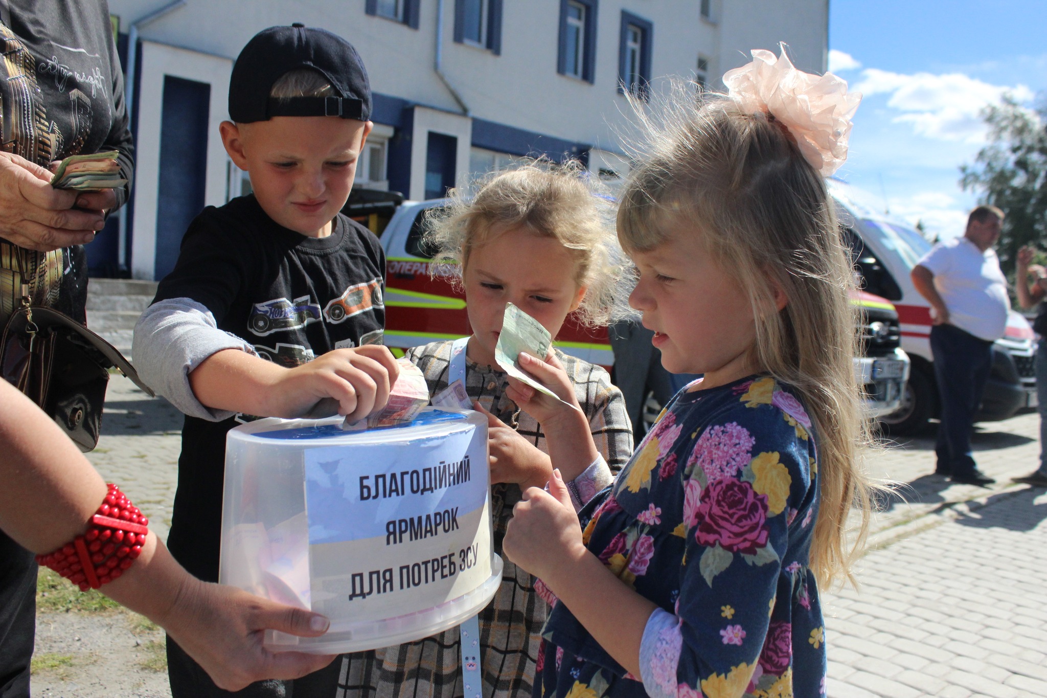 У смт Рокитне Рівненської області, 2 вересня, відбувся благодійний ярмарок на якому діти громади активно допомагали збирати кошти для ЗСУ.