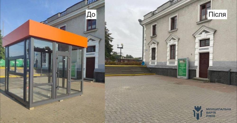 На залізничному вокзалі у Рівному демонтували незаконно встановлену тимчасову споруду.