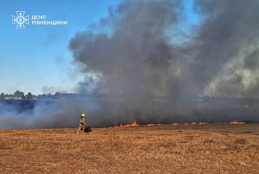 Поблизу села Новосілки Здолбунівської територіальної громади сталася пожежа післяжнивних залишків. Вогонь охопив близько 2,8 гектара стерні.