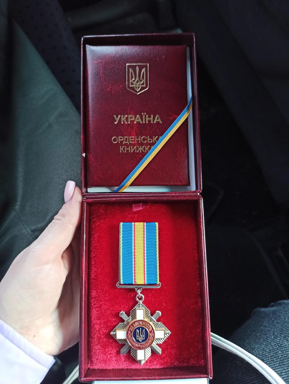 Замість татуся державну нагороду отримали донечка Кіра та її мама Вікторія. Це вже друга отримана ними нагорода.