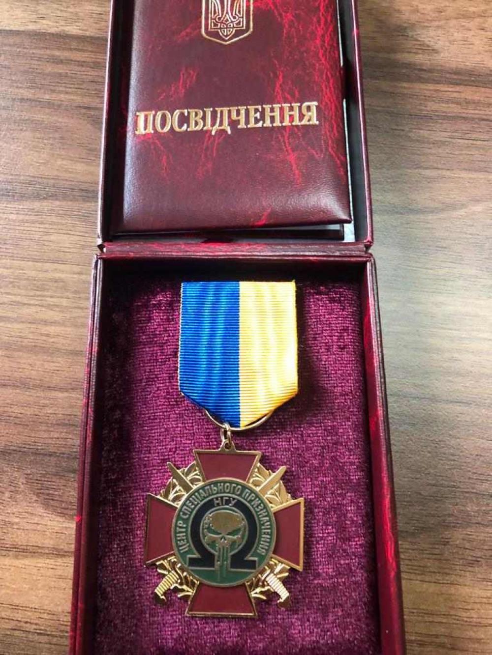 Олега Думу нагородили почесним знаком «За співпрацю» від центру спеціального призначення НГУ.