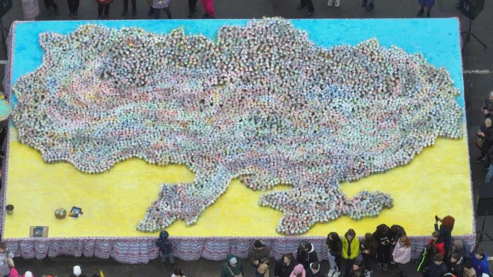 У Подільську Одеської області встановили Національний рекорд - виклали найбільшу мапу України з великодніх пасок, які невдовзі поїдуть на передову до військових.