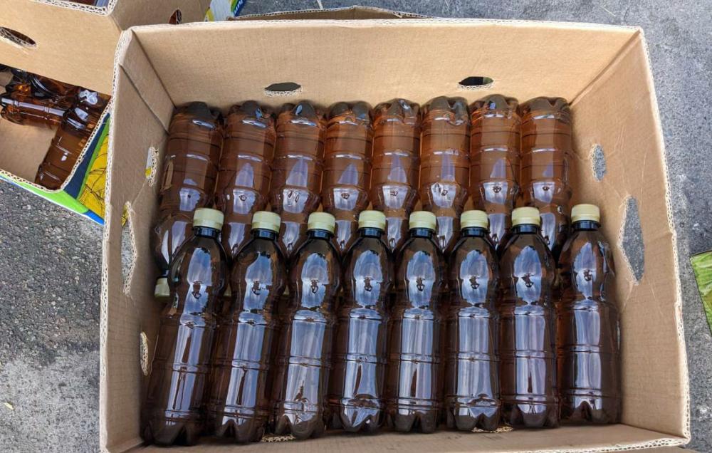 6 червня поліцейські провели санкціонований обшук у транспортному засобі. В салоні та багажнику виявили та вилучили 3868 пачок цигарок без марок акцизного податку, 600 пластикових пляшок по 0,5 літрів кожна загальним об’ємом 300 л, а також 3 термопакети по 9,5 літрів невідомою речовиною із різким запахом алкоголю.