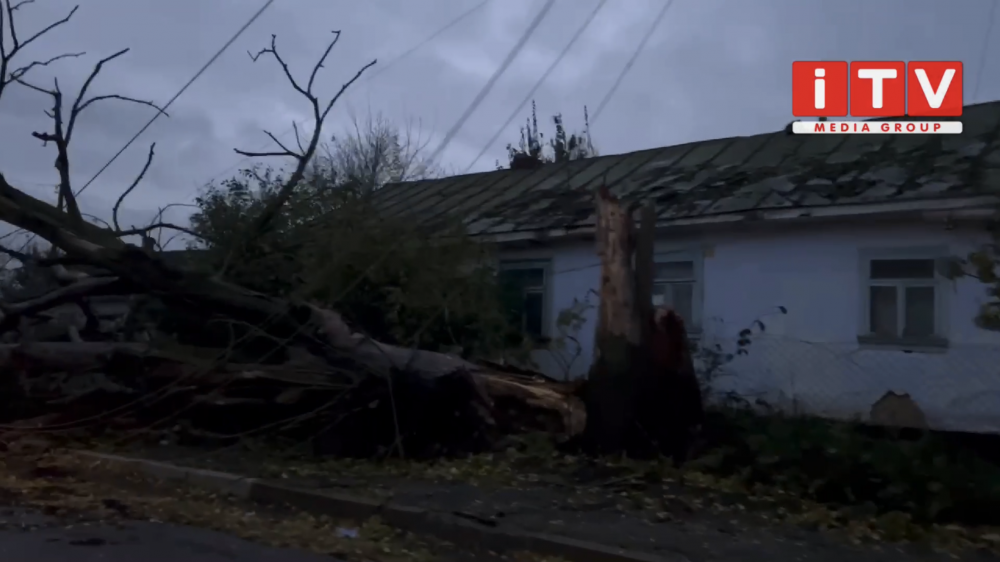 На відео наслідки нічної негоди у с. Козин. Впало дерево та електроопора.