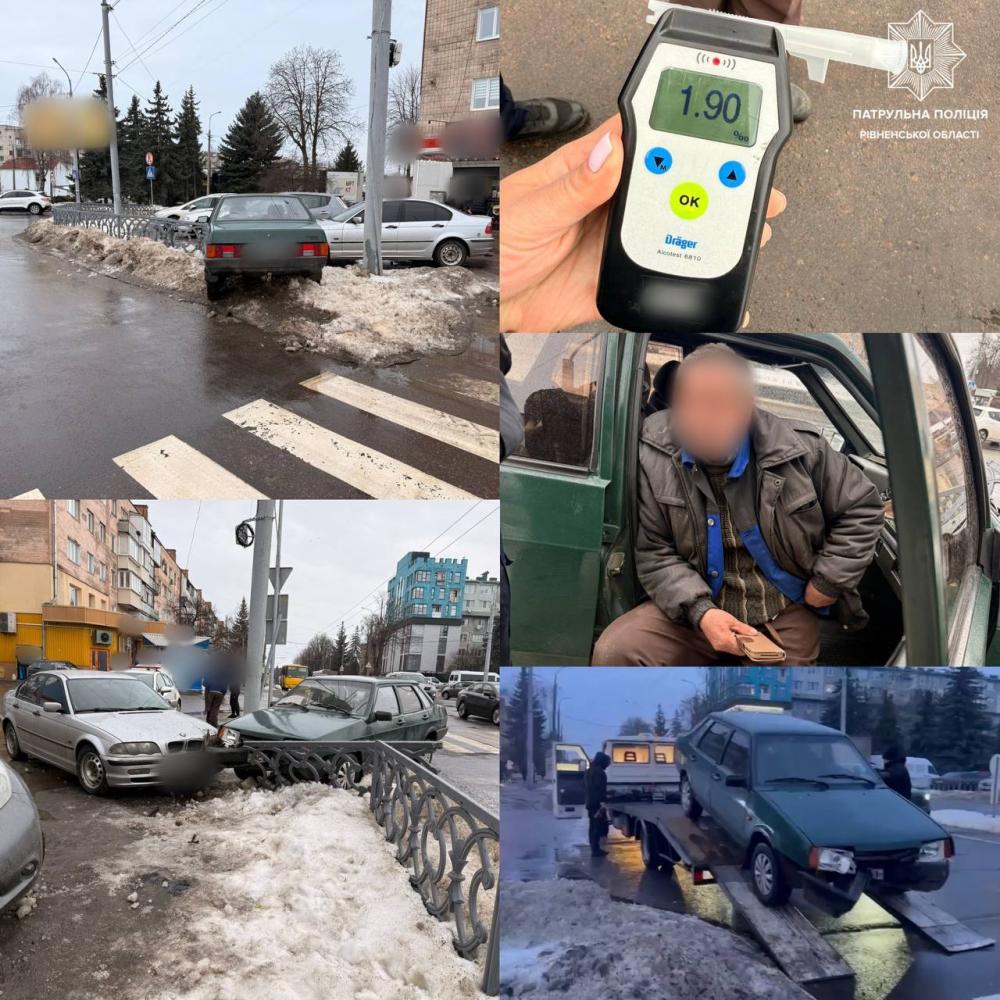 Під час спілкування інспектори виявили у водія ознаки алкогольного сп’яніння. Чоловік погодився пройти огляд на місці за допомогою алкотестера — результат показав 1,90 проміле.