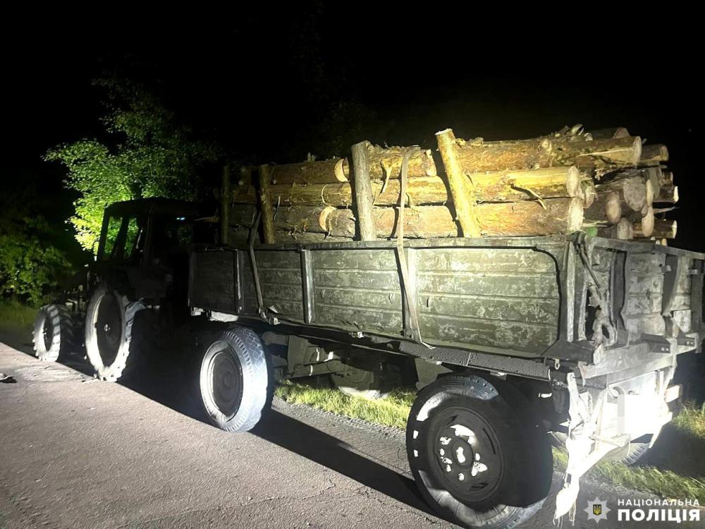 СОГ задокументувала кримінальне правопорушення: за результатами проведеного огляду вилучено транспортний засіб із причепом, завантаженим сосновими колодами об'ємом орієнтовно сім метрів кубічних.