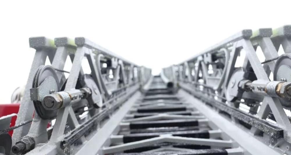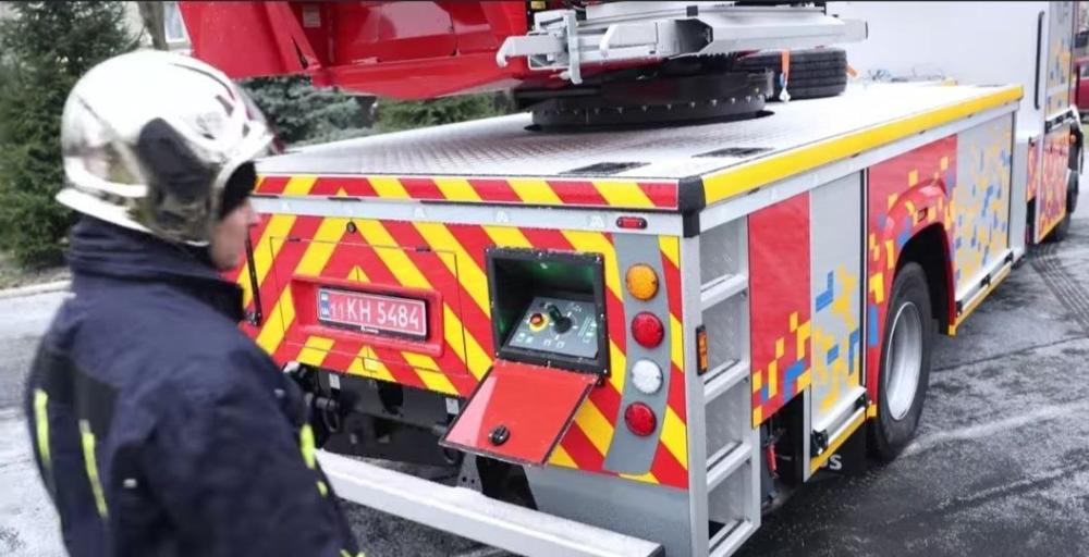 Ця автодрабина оснащена передовою системою висування, що дає можливість рятувальникам швидко дістатися до високих поверхів будівель.