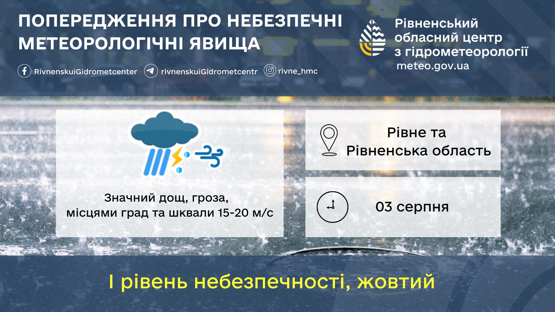 На Рівненщину насувається негода. Відтак в області оголосили І рівень небезпечності — жовтий.