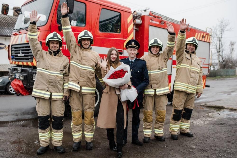 Лейтенант служби цивільного захисту Володимир Трофіменко проходить службу в місті Острог на посаді фахівця відділу із забезпечення заходів з попередження надзвичайних ситуацій ГУ ДСНС області. Володимир вирішив зробити пропозицію-сюрприз для коханої. Для цього запросив Ілону в гості до 17-ї державної пожежно-рятувальної частини, де проходить службу. І тут на дівчину очікував приємний сюрприз.