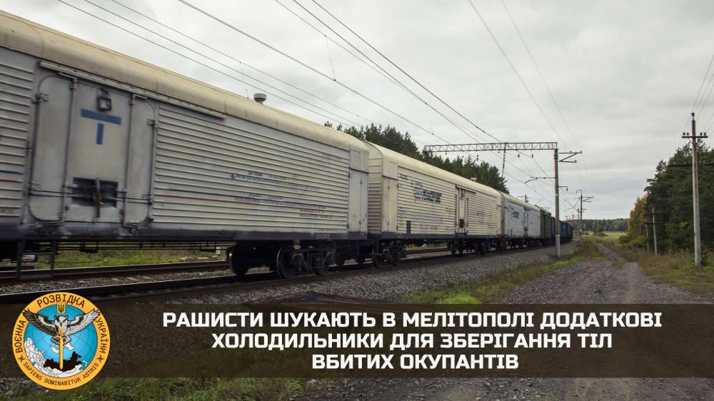 "Зокрема, 6 червня російські військові приїхали до ТОВ «Арон-М» (Мелітополь, вул. Ломоносова, 370) та вивчили його холодильні камери. Обладнання було визнано придатним для переобладнання в морг. Керівництво компанії було повідомлене про «рішення щодо тимчасового їх використання на безоплатній основі для зберігання тіл загиблих військовослужбовців». Зазначається, що наразі в Мелітополь активно завозяться трупи рашистів, які загинули під час боїв на напрямку Пологи – Гуляйполе", - йдеться у повідомленні.