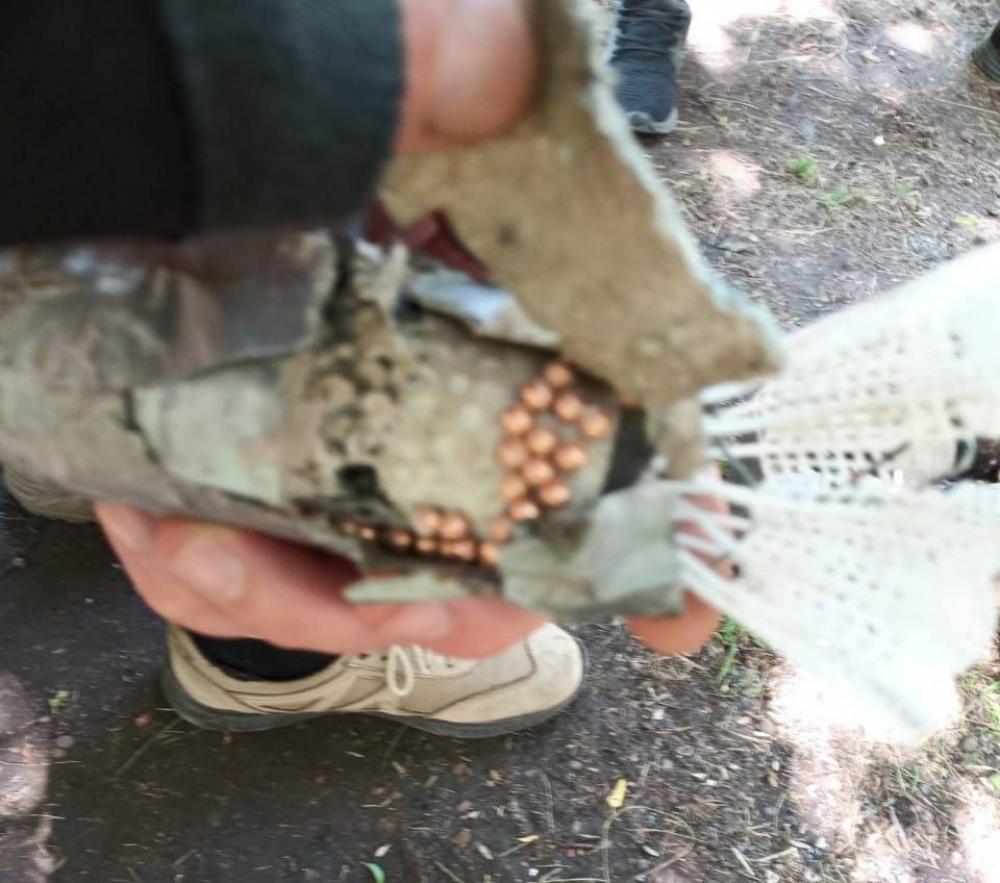 "На фото можна бачити як вони виглядають: детонатор, пластид та купа кульок для пневматичної зброї. Зверху - оперення від воланчика. Вірогідний радіус ураження 30-50 метрів.Нагадую вкотре: не чіпайте незнайомі предмети та не намагайтеся їх знешкоджувати самостійно", - зауважує Очільник Сумської ОВА.