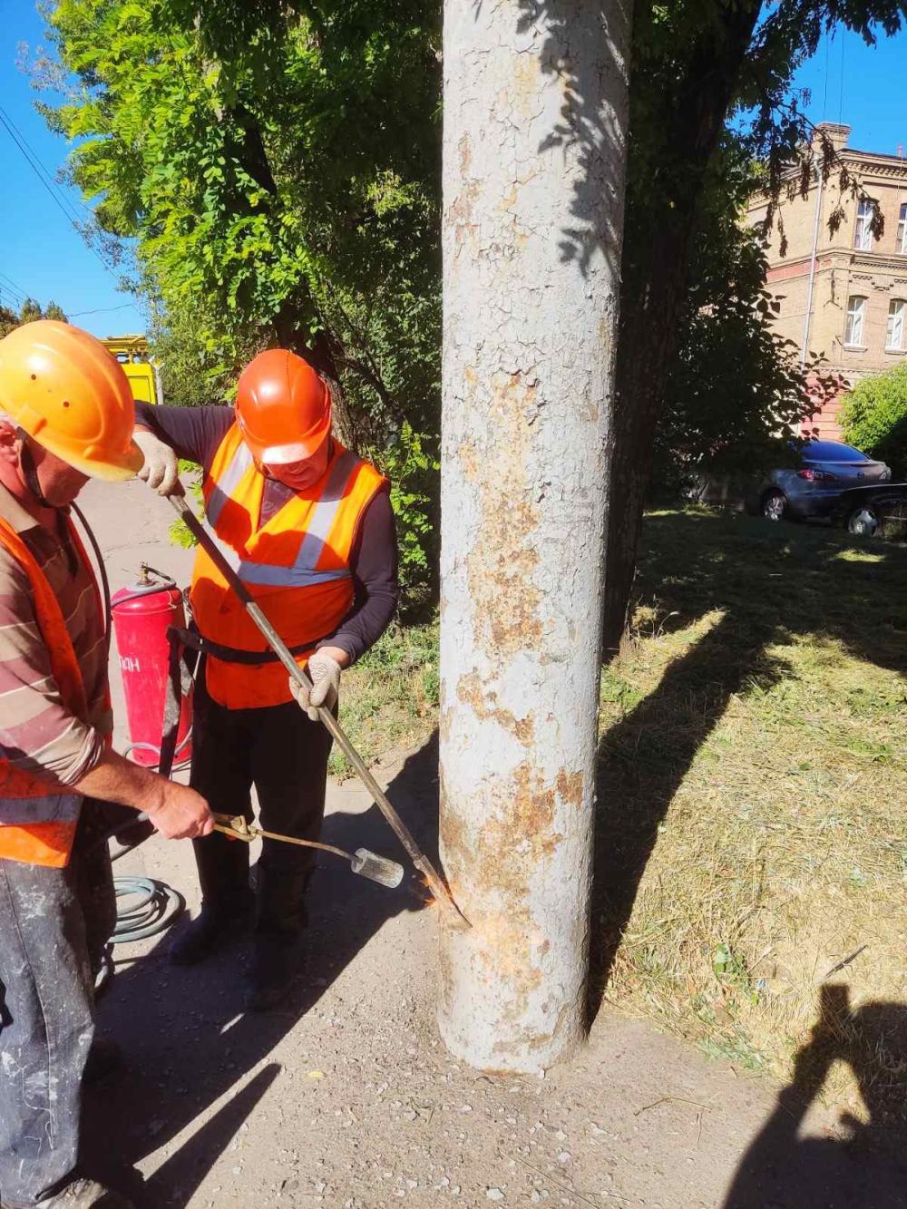 Працівники служби провели обпалення, очищення та фарбування металевих опор контактної мережі. Зазначають, що ці роботи спрямовані на покращення зовнішнього вигляду та продовження експлуатаційного ресурсу конструкцій.