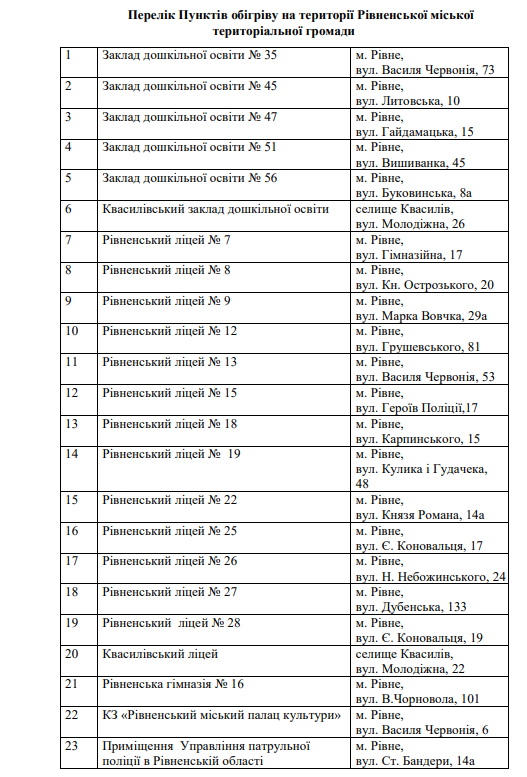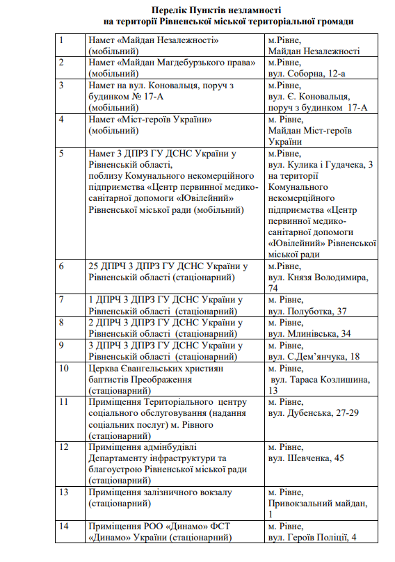 У Рівненській громаді працюють 14 пунктів незламності, 1 містечко незламності та 23 пункти обігріву.
