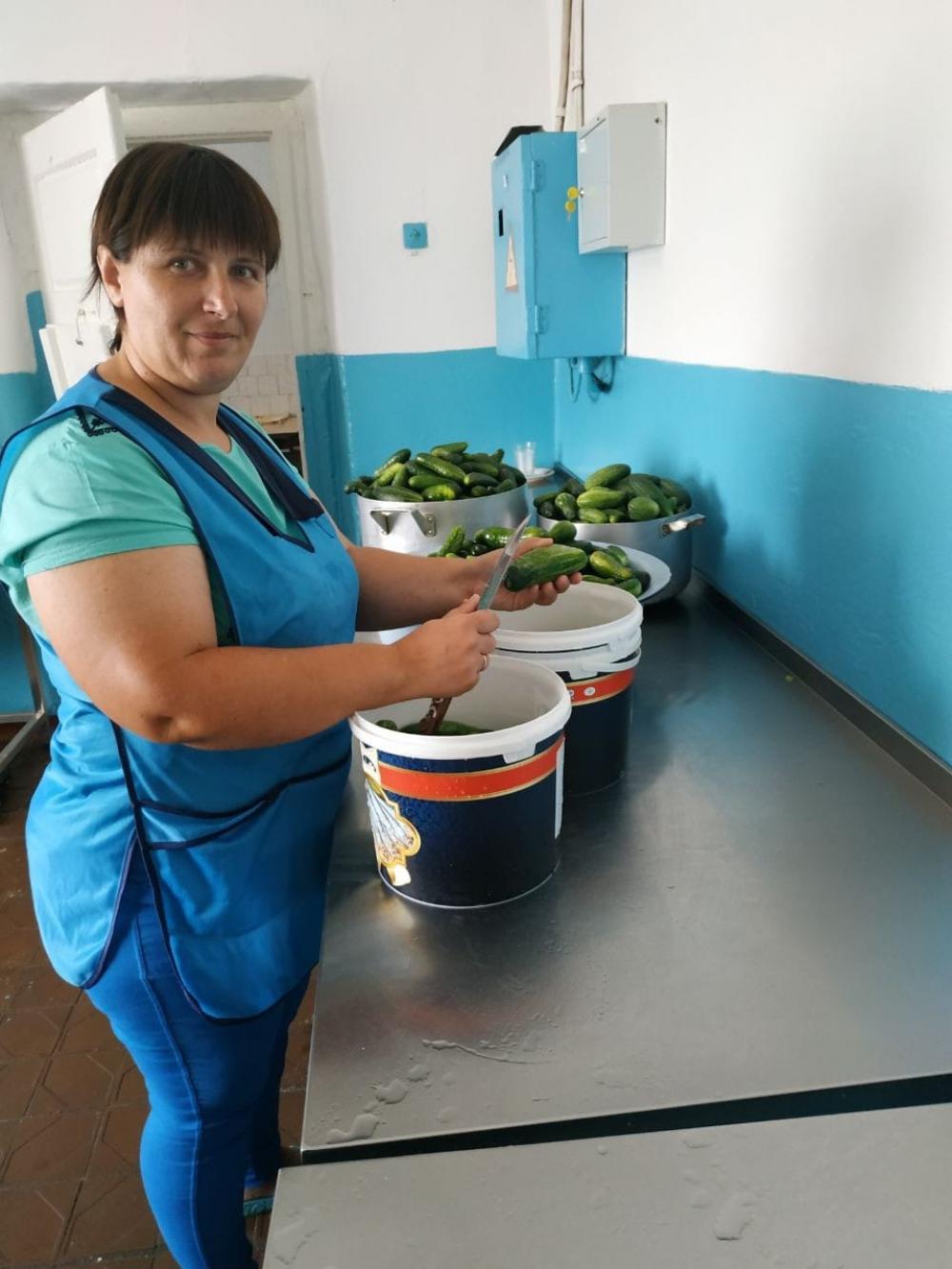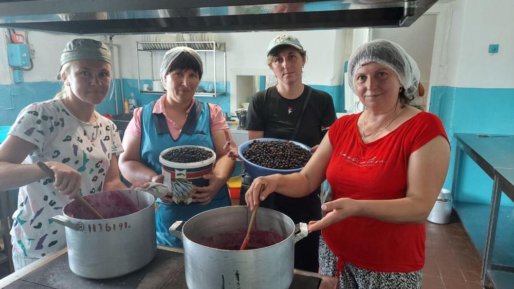 Колектив закладу вже закрутили десятки банок смородинового варення. Також засолили 28 відер огірків, спекли 136 кілограмів печива. Відправляють військовим і котлети, і власноруч спечені булочки.