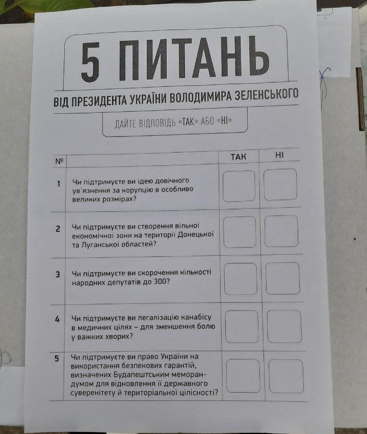 Жодних даних людей вказувати не просять, підписів ставити не потрібно теж. Запитання розміщенні на одному бюлетні. Потрібно відповісти так або ні.