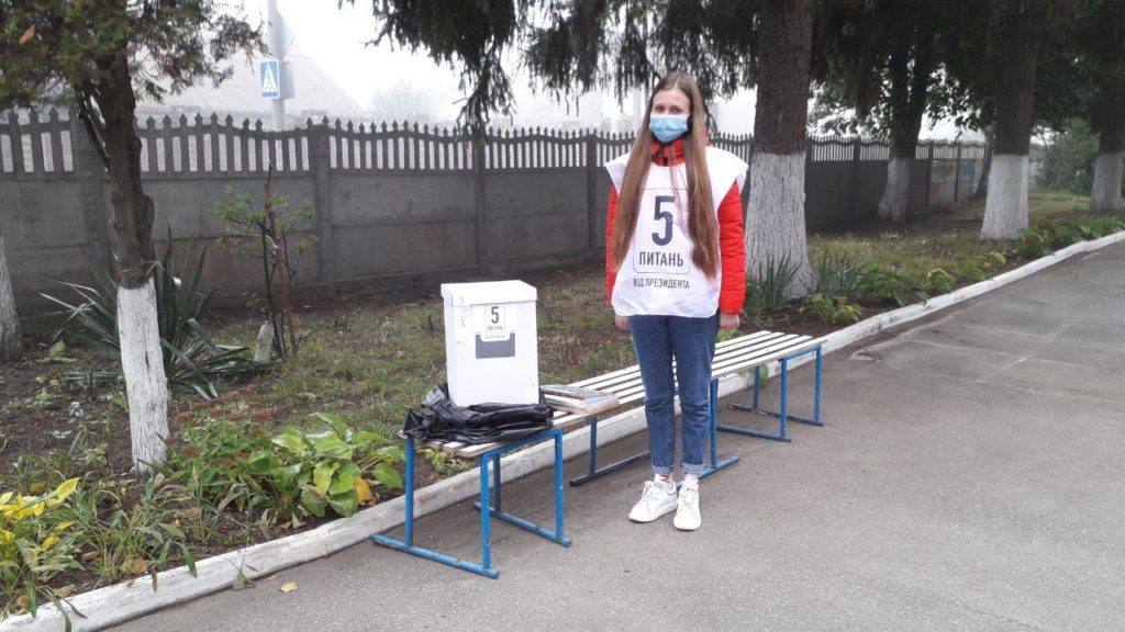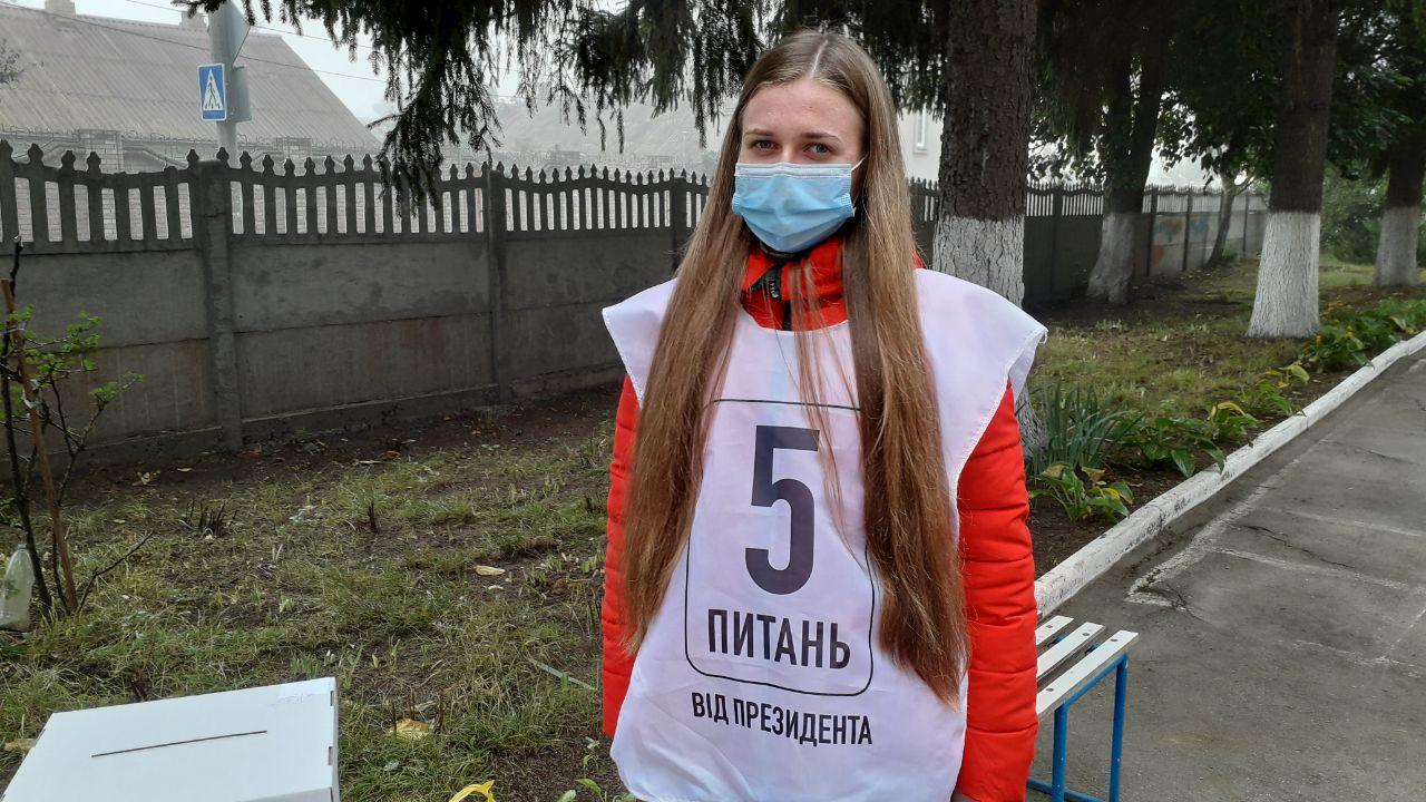 Волонтерка знаходиться за межами дільниці. За її словами опитування проводять на кожній дільниці.