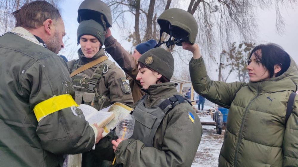 Сьогодні нагвардійці Олена та Олександр на бойових позиціях обвінчалися та склали подружню присягу перед Богом і людьми.