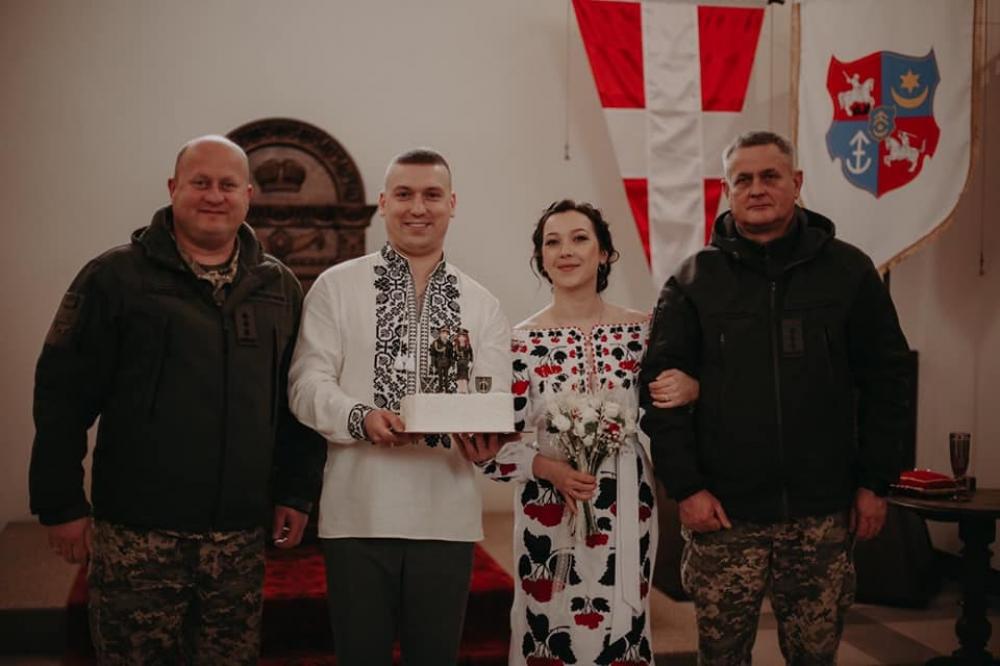 "Перемоги й мирного неба вам, молодята, щасливих років спільного подружнього життя у вільній Україні! Слава Україні!"