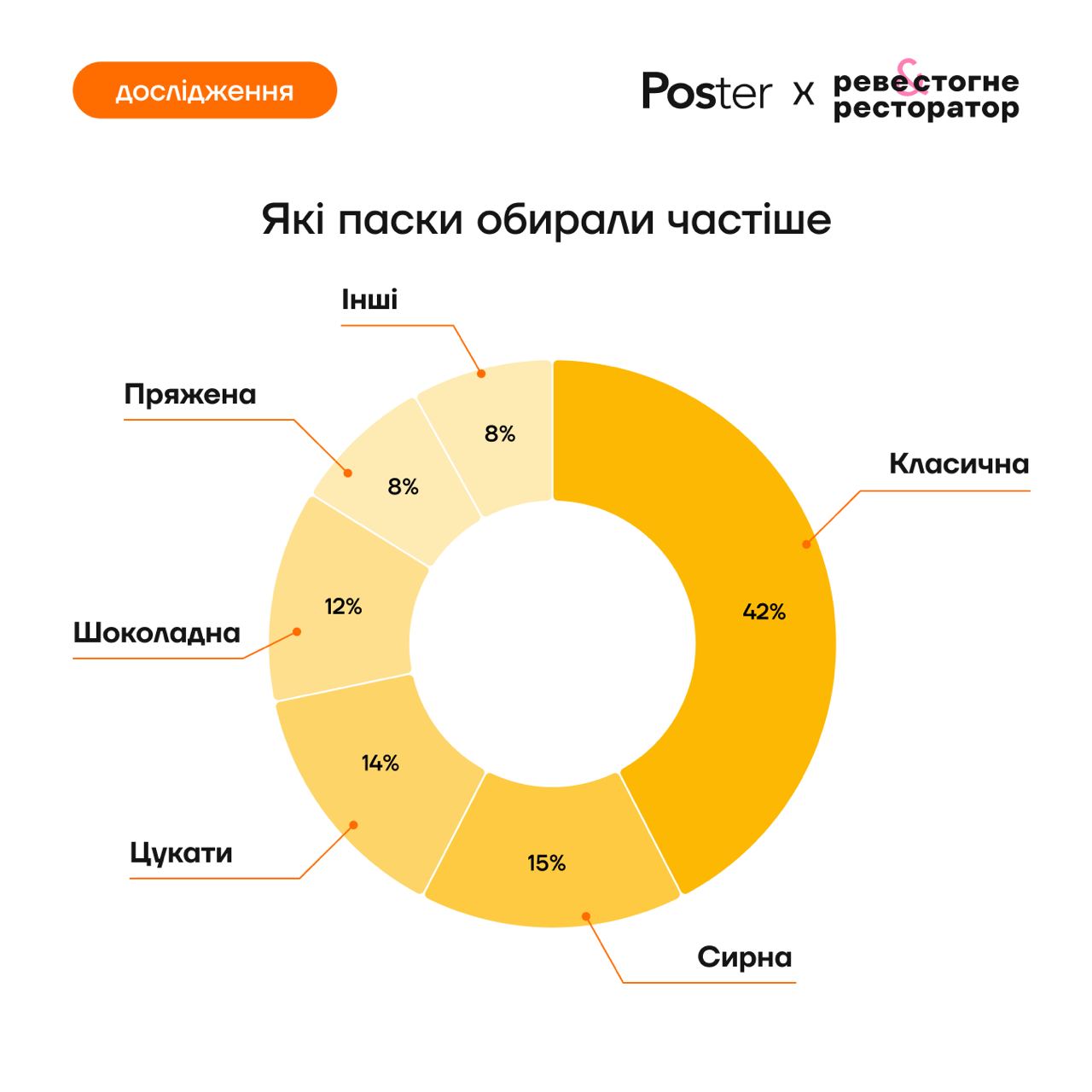 Пік продажів припав на пʼятницю 18 квітня. Найпопулярнішою стала «класична» паска, на другому місці — сирна випічка. Але ресторатори експериментують зі смаками, тож в меню закладів можна натрапити й на дубайську, паску-снікерс, і, навіть, на суші-паску.