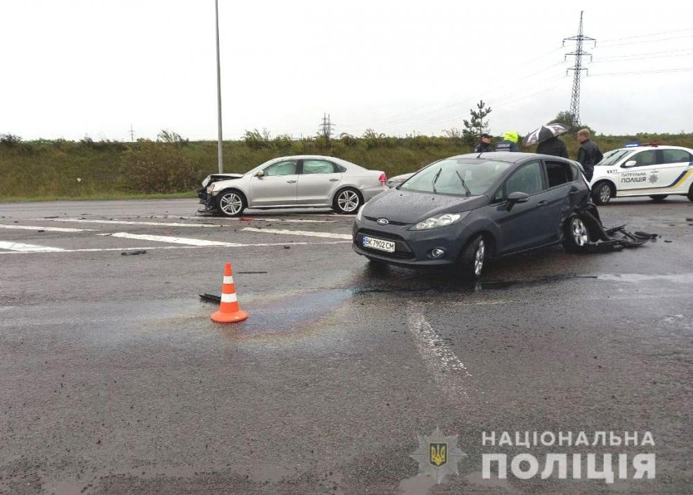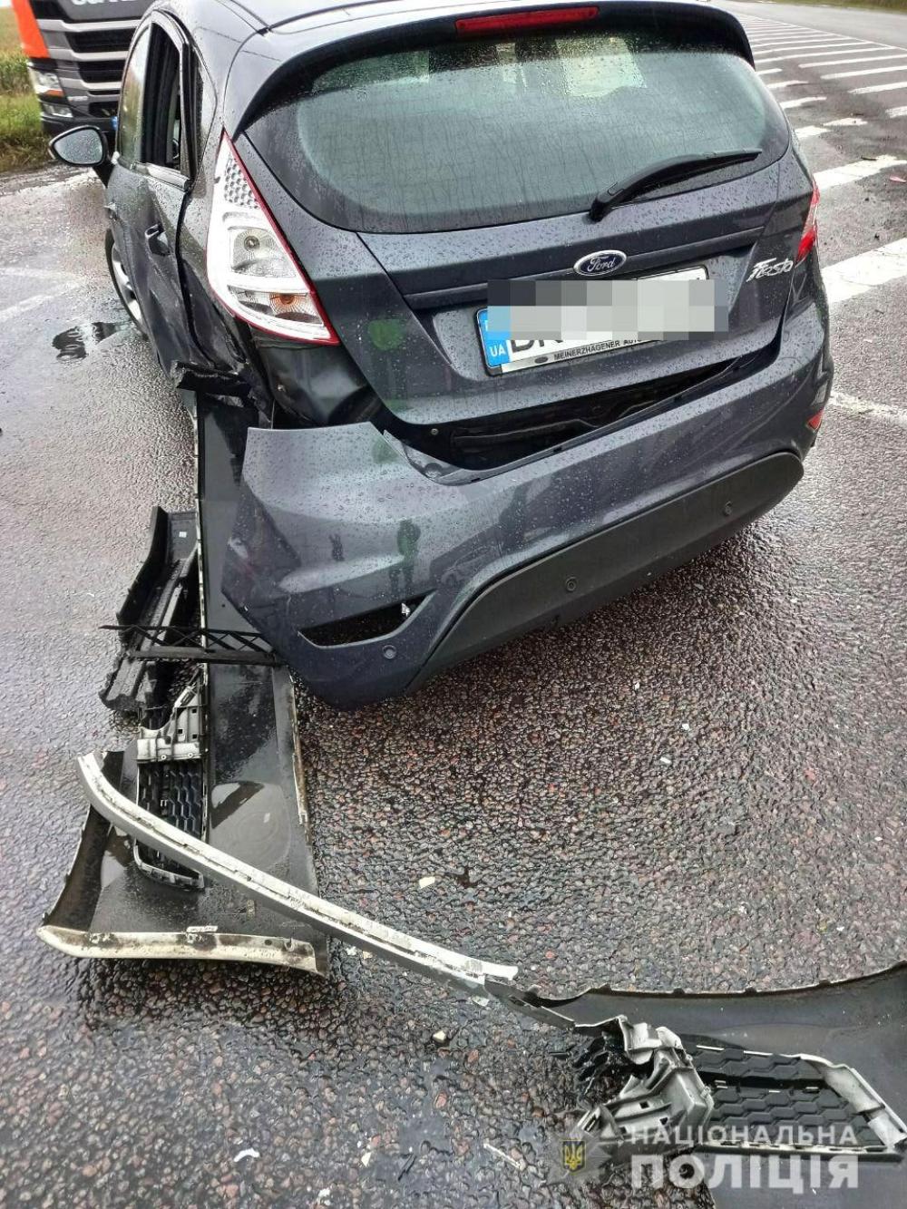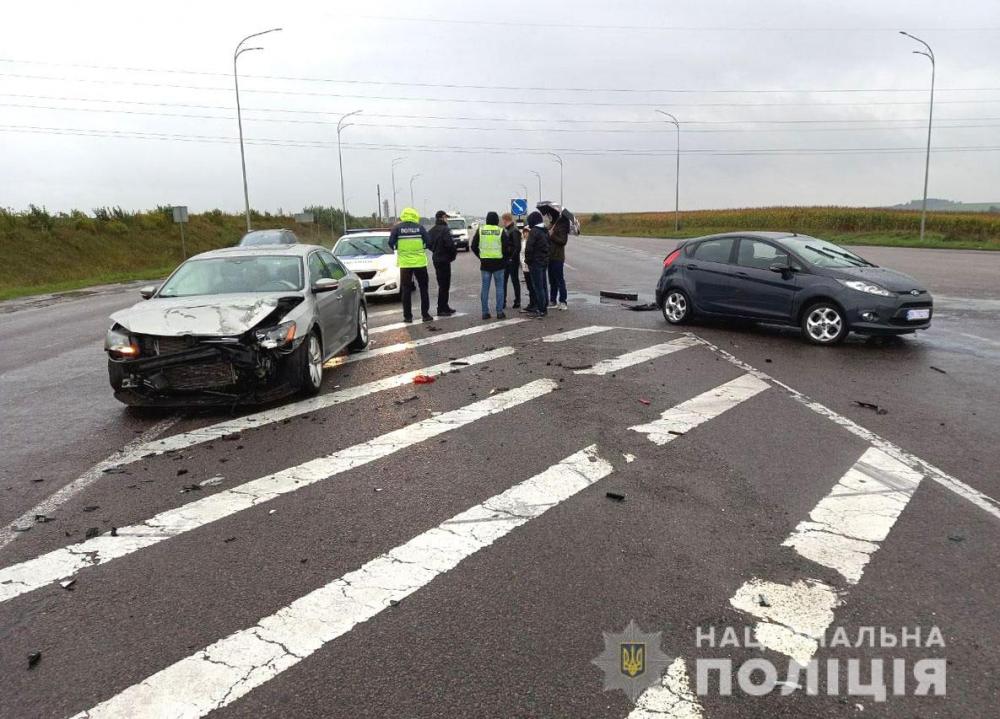 47-річна жителька села Здовбиця, водійка автомобіля «Ford Fiesta», порушивши правила дорожнього руху під час маневру розвороту із правої смуги, допустила зіткнення із попутним транспортним засобом «Volkswagen Passat» під керуванням 62-річного киянина.