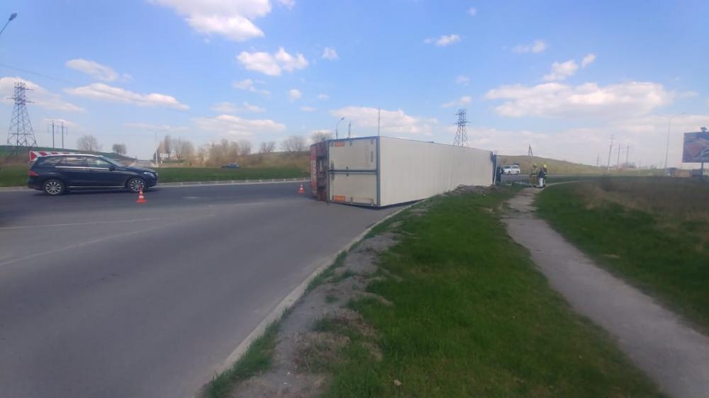 Водій вантажівки «MAN» із напівпричепом, 54-річний житель Львівщини, рухаючись перехрестям із круговим рухом, не впорався з керуванням, внаслідок чого автомобіль перекинувся на бік. Керманич отримав незначні травми.