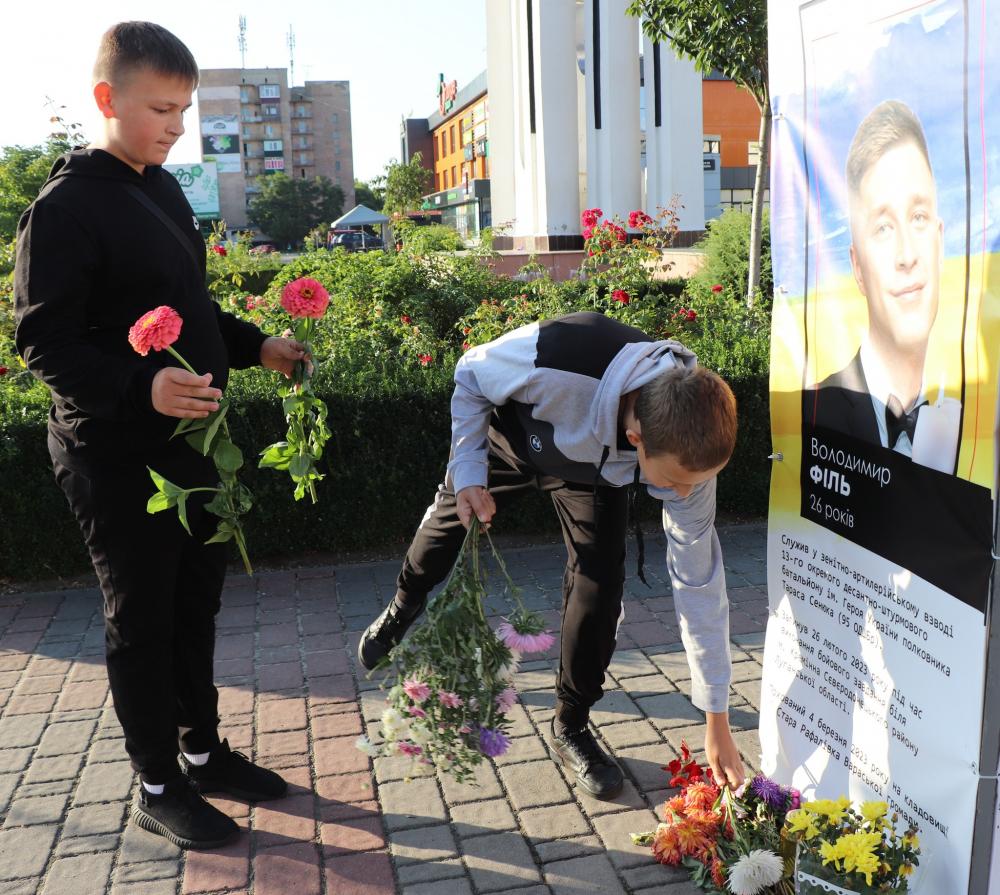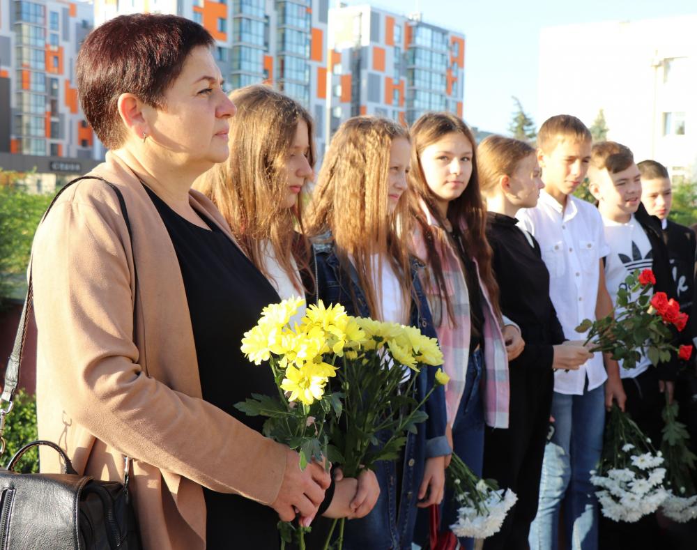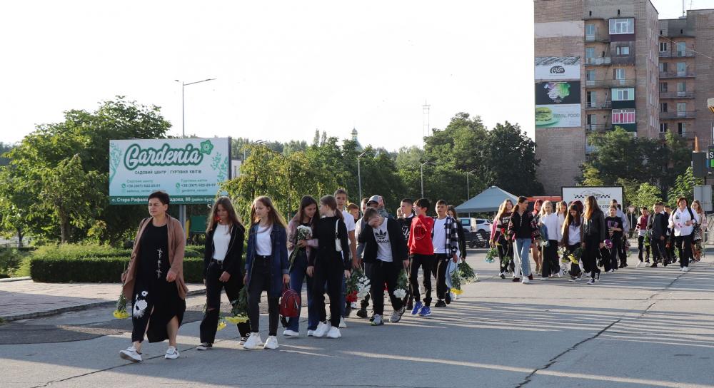 Школярі вшанували військових хвилиною мовчання та поклали квіти до інсталяції.