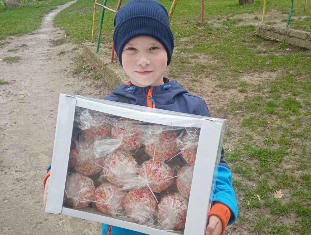 Після Великодня хлопець знову приніс свій донат. Цього разу - це 1000 гривень. Не забув і про смаколики.