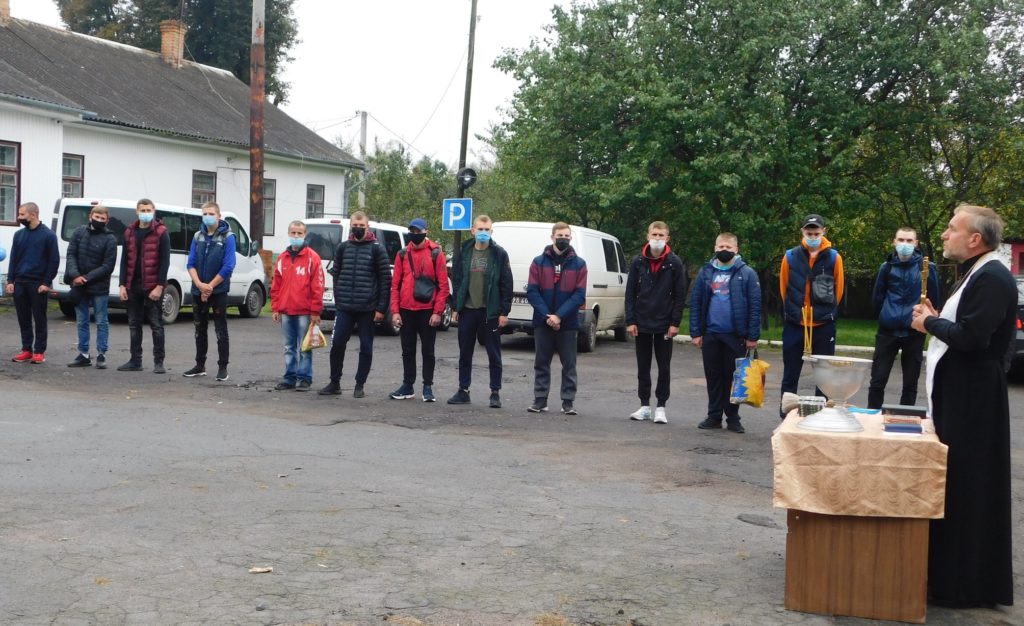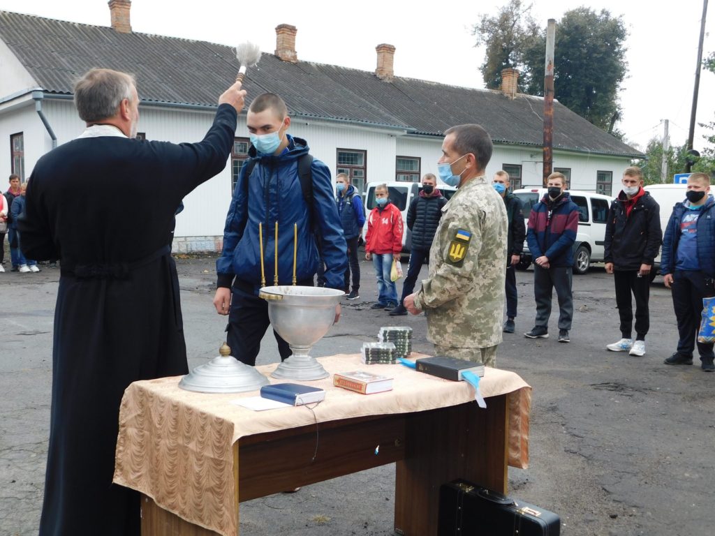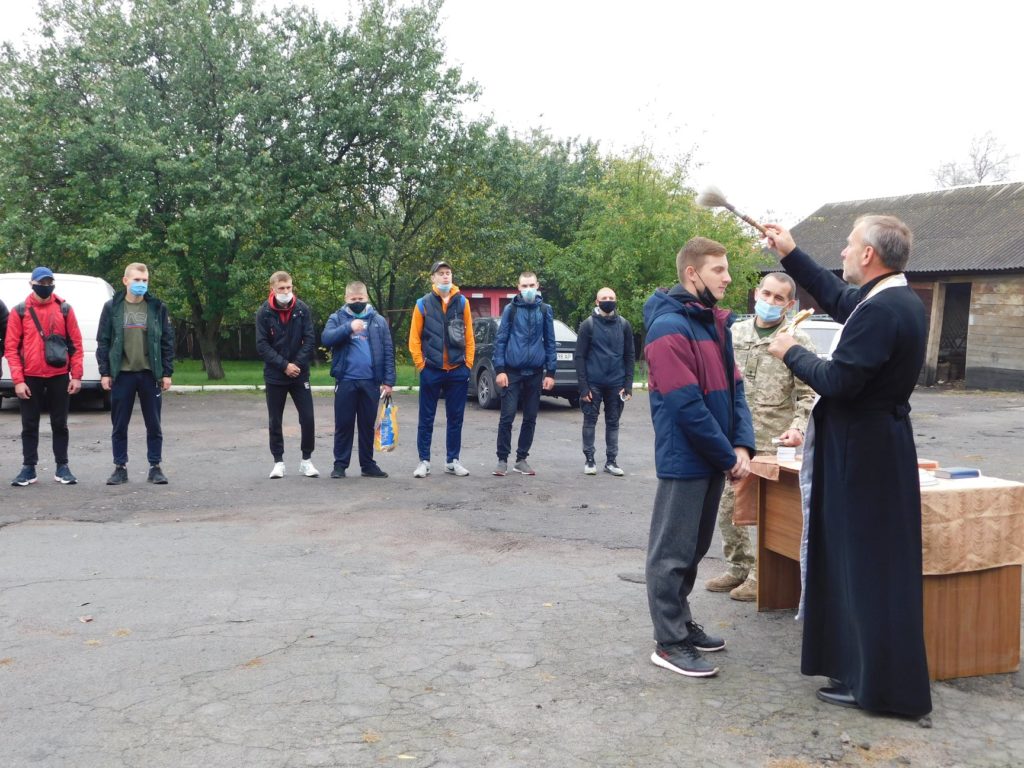 Під час проводів настоятель Церкви Святого Василія Великого, що у Гощі, отець Олег благословив юнаків на майбутню службу та подарував кишенькову книгу «Новий заповіт» кожному з 14 призовників.