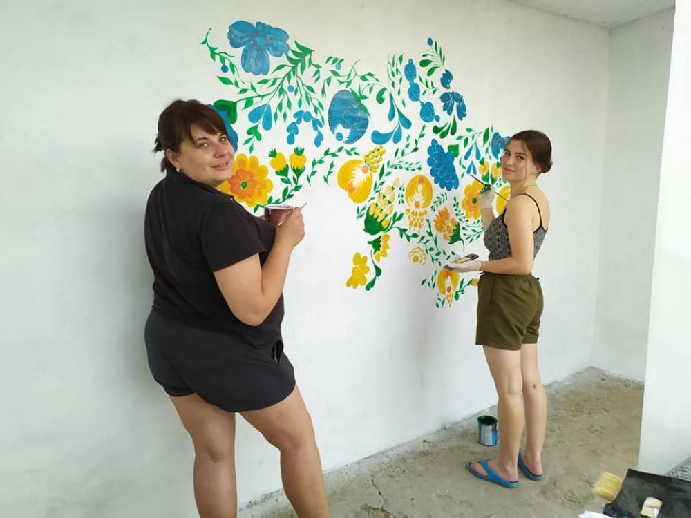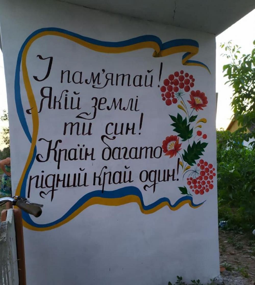 Локацію оновили за сприяння місцевої влади та меценатів. Зупинку відремонтували. До речі, жителям села в цьому допомагав і переселенець. Виготовили та змонтували вивіску, змайстрували лавочку. А потім розписали стіни, перетворивши зупинку на артоб’єкт.