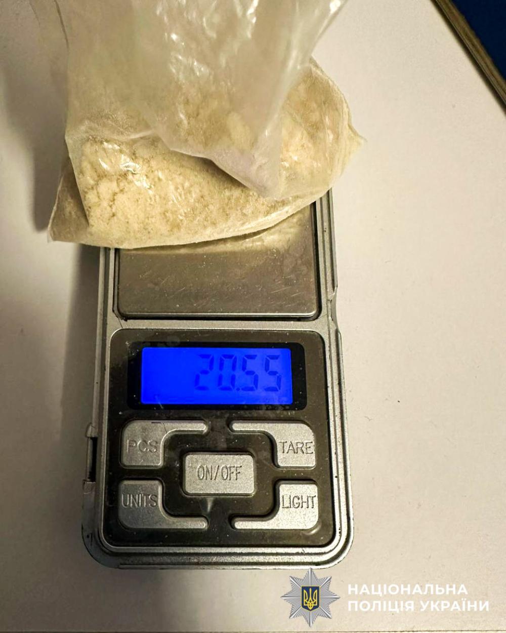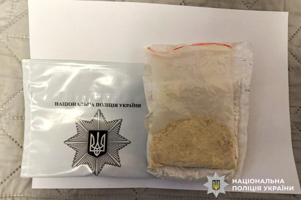 Під час слідчих дій правоохоронці виявили та вилучили зип-пакет з особливо небезпечною психотропною речовиною PVP, орієнтовно розрахованою на 120 доз, а також понад 5 кілограмів «сонячного» каміння — бурштину.