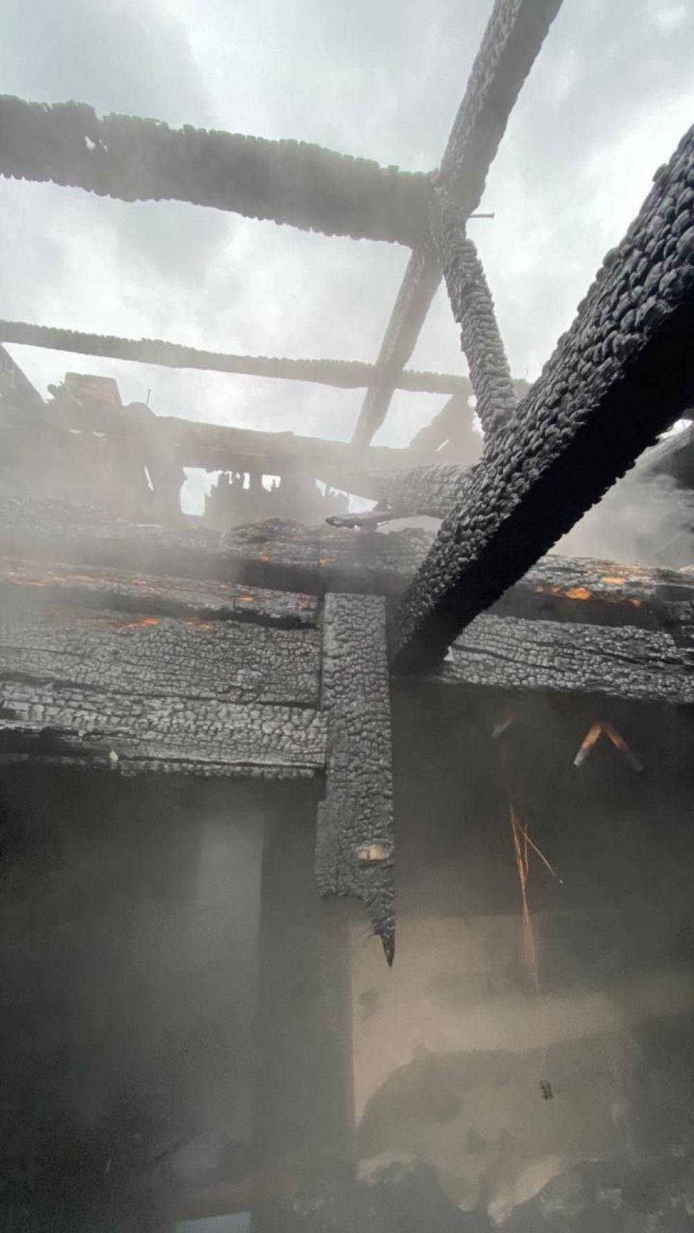 Вогнем знищено меблі та речі домашнього вжитку в 3-х житлових кімнатах та пошкоджено перекриття та стіни житлового будинку.