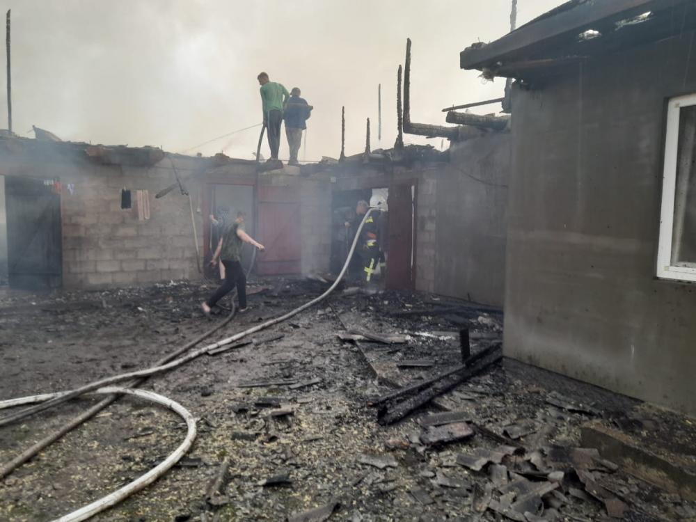 Внаслідок пожежі вогнем знищено дах та перекриття господарської будівлі по всій площі розміром 25х6м, речі домашнього вжитку, електроінструмент, свійська тварина. Жертв та постраждалих немає.