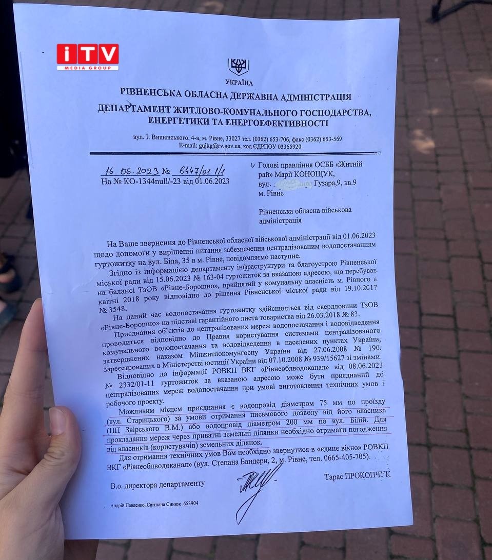 За словами мешканців гуртожитку, вони не підключені до централізованої системи водопостачання та водовідведення. Справа із органами, які за це відповідають, тягнеться два роки. Тож вони вирішили прийти для того, аби їх побачили і виділили гроші на розробку проектно-кошторисної документації.