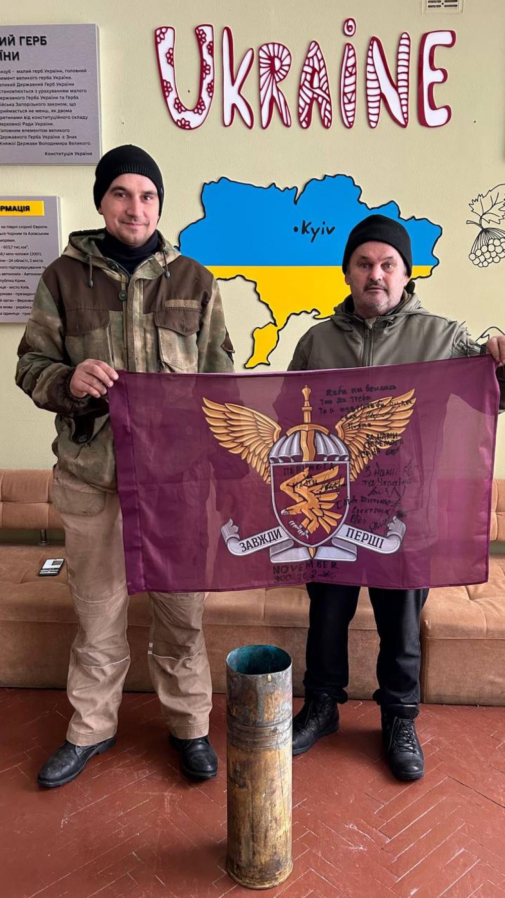 Як подяку за отриману "Газельку", хлопці передали на Рівненщину речі, які вже несуть у собі історію - підписаний Героями прапор бригади та частину ворожих снарядів.