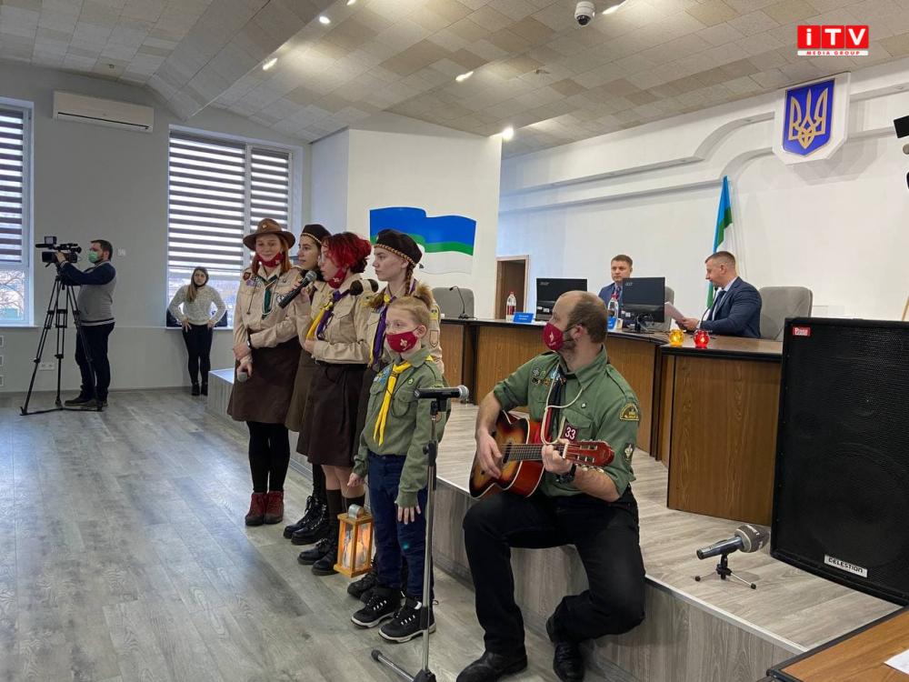 Сьогодні, 17 грудня, на позачергову сесії Рівнеради пластуни принесли Вифлеємський вогонь миру.