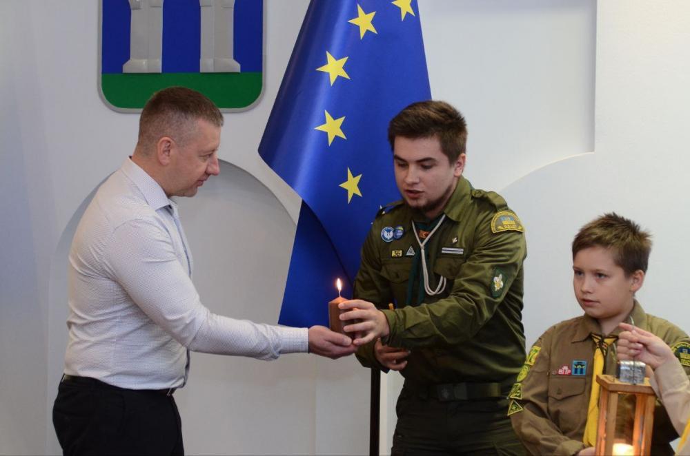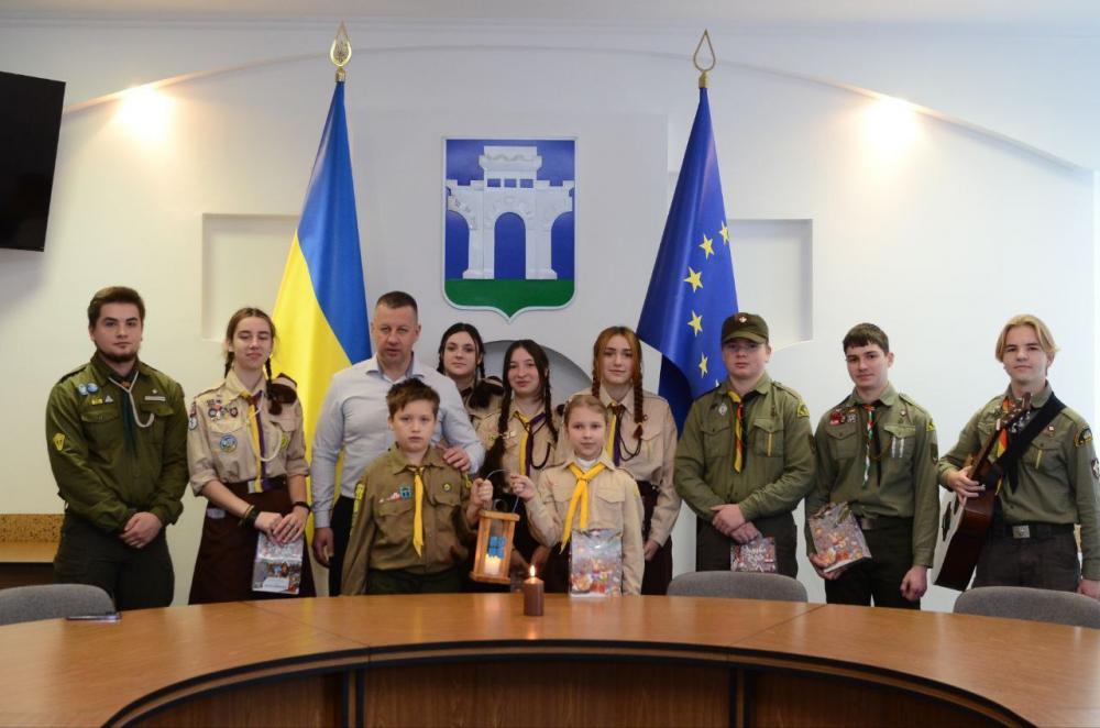Сьогодні пластуни Рівного передали Рівнераді Вифлеємський вогонь миру.