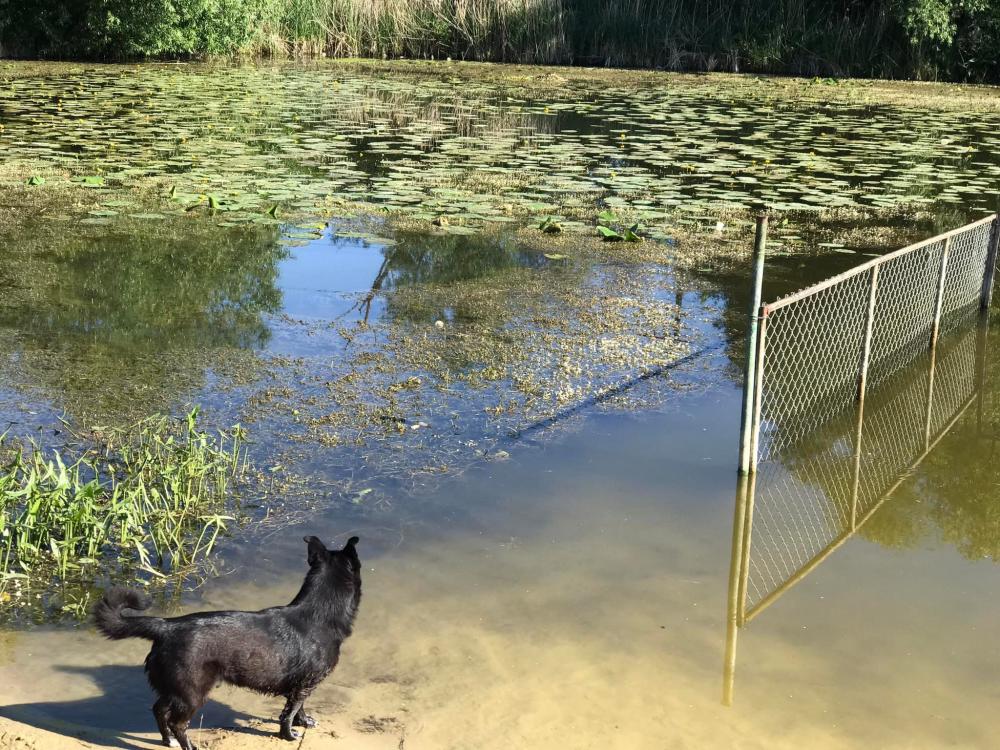 Місцеві жителі скаржаться на те, що "дитячий" пляж, який розташований по вулиці Старомильська, повністю заріс водоростями та лататтям. Відповідно ні відпочивати, ні купатися там неможливо.