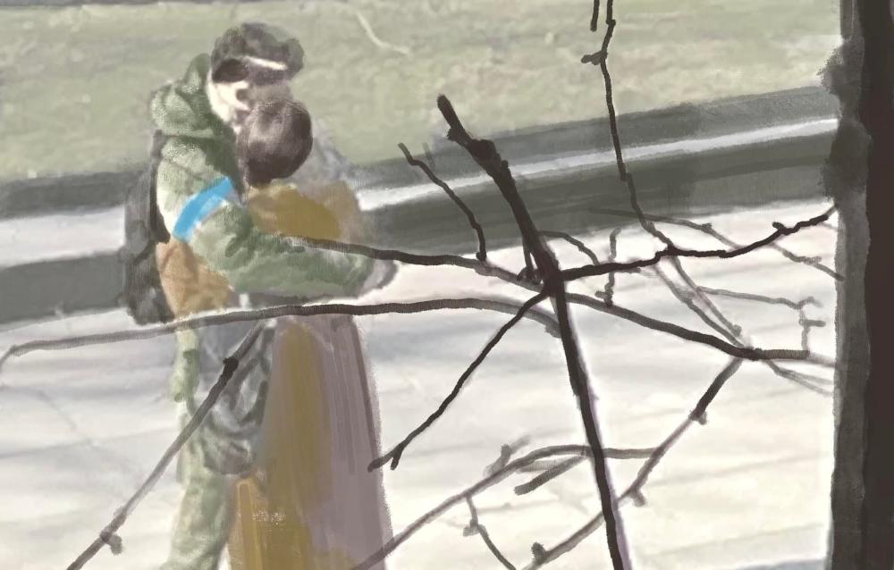 Олена Фещук намалювала закохану пару, яку побачила з балкону.