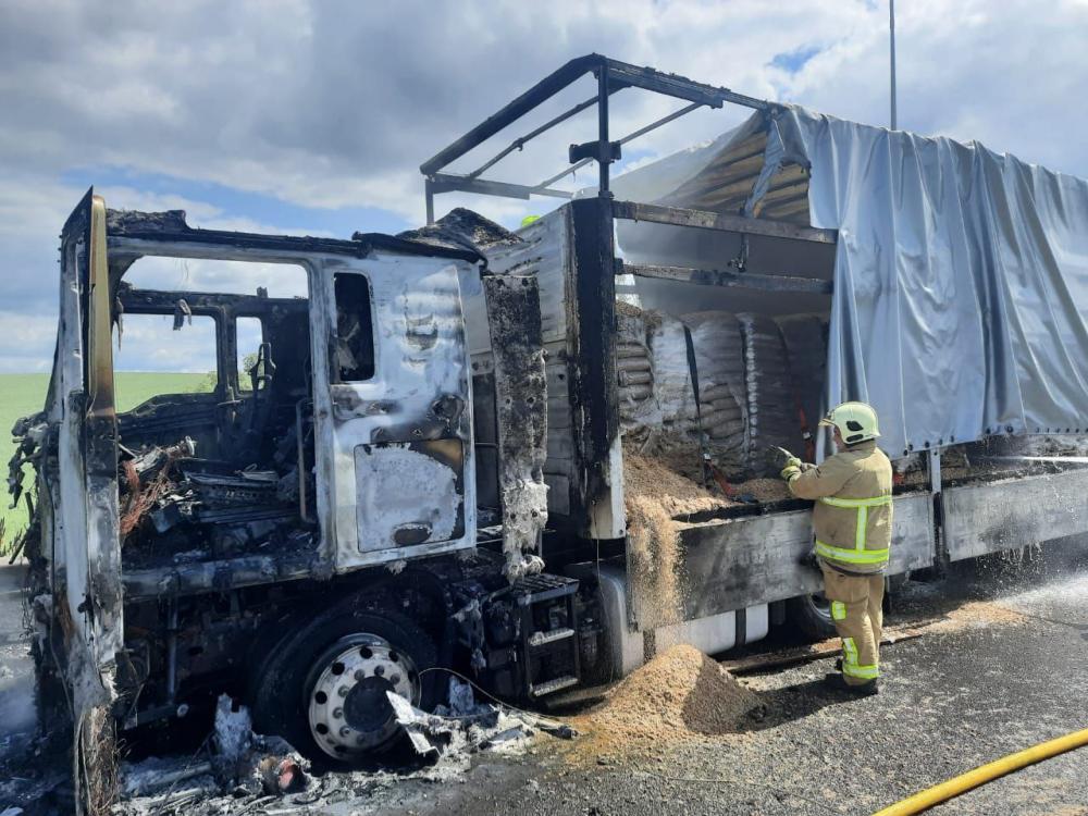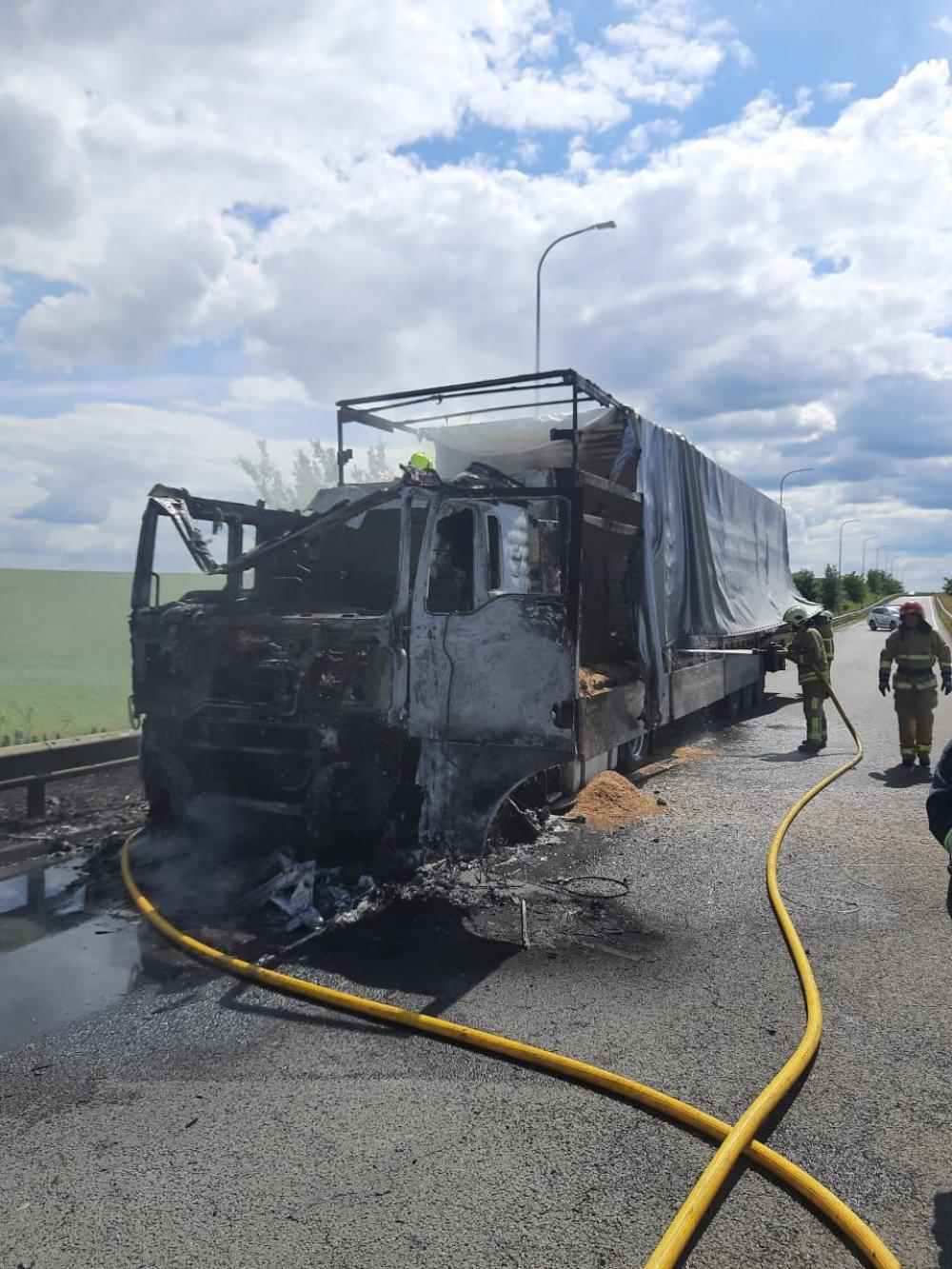 Вогнеборці врятували більшу частину вантажу (гранульована тирса). Вогнем знищено кабіну вантажного автомобіля.