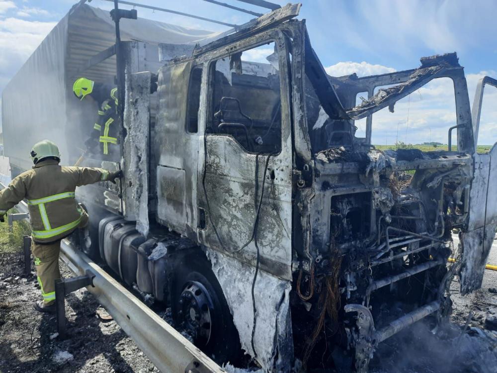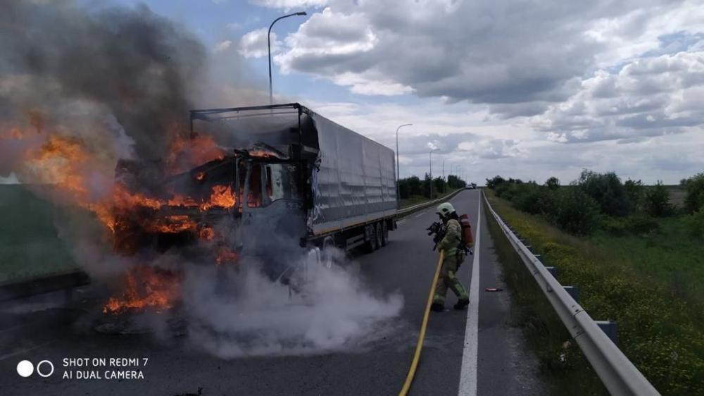 По прибуттю на місце виклику рятувальники встановили, що вогнем охоплено передню частину вантажного автомобіля марки MAN. На гасіння було подано вогнегасні речовини. Пожежу ліквідували. Жертв та постраждалих немає.
