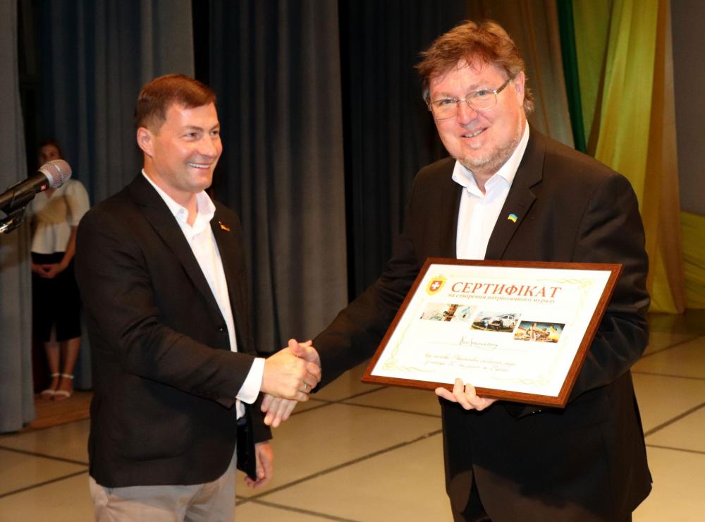 "Це подарунок від керівництва обласної ради – на місці, яке ви виберете, рівненський художник Костянтин Качановський, який уже малював стінописи у Рівному, Києві, створить для всіх жителів патріотичний мурал", – прокоментував очільник облради.