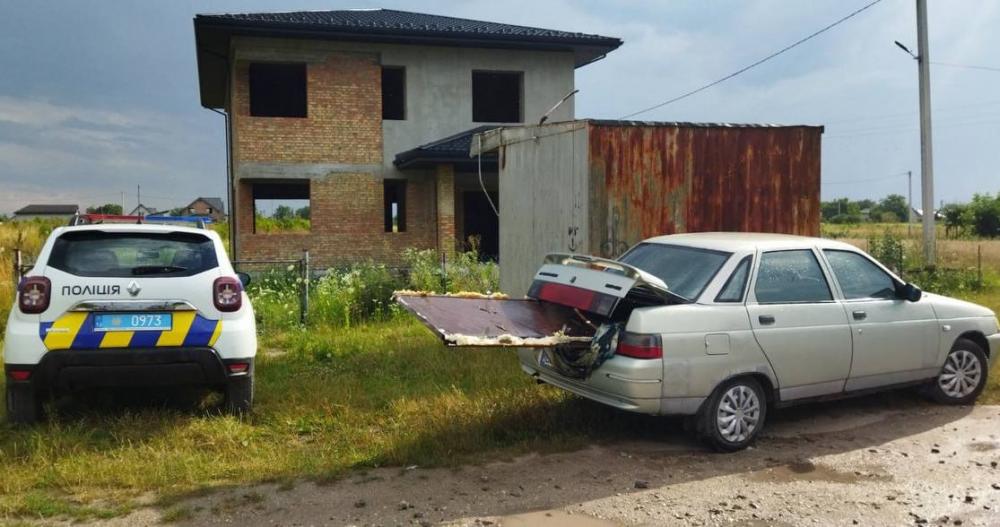 За отриманою інформацією про скоєну крадіжку, орієнтовно через 20 хвилин на вулиці Мельника в райцентрі поліцейські офіцери Дубенської тергромади виявили автомобіль «ВАЗ 2110», із багажника якого стирчала частина дверей.