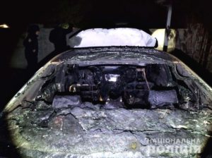 Вогонь іномарку знищив майже повністю. З місця події слідчі вилучили пожежне сміття та змиви паливно-мастильних матеріалів.