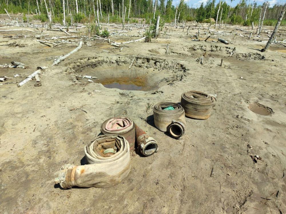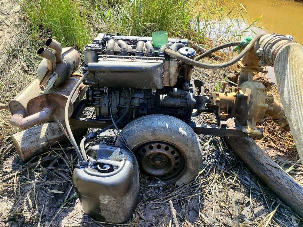 Також під час проведення трьох обшуків за місцями проживання вказаних осіб, працівники поліції вилучили іще одну мотопомпу та бурштин.