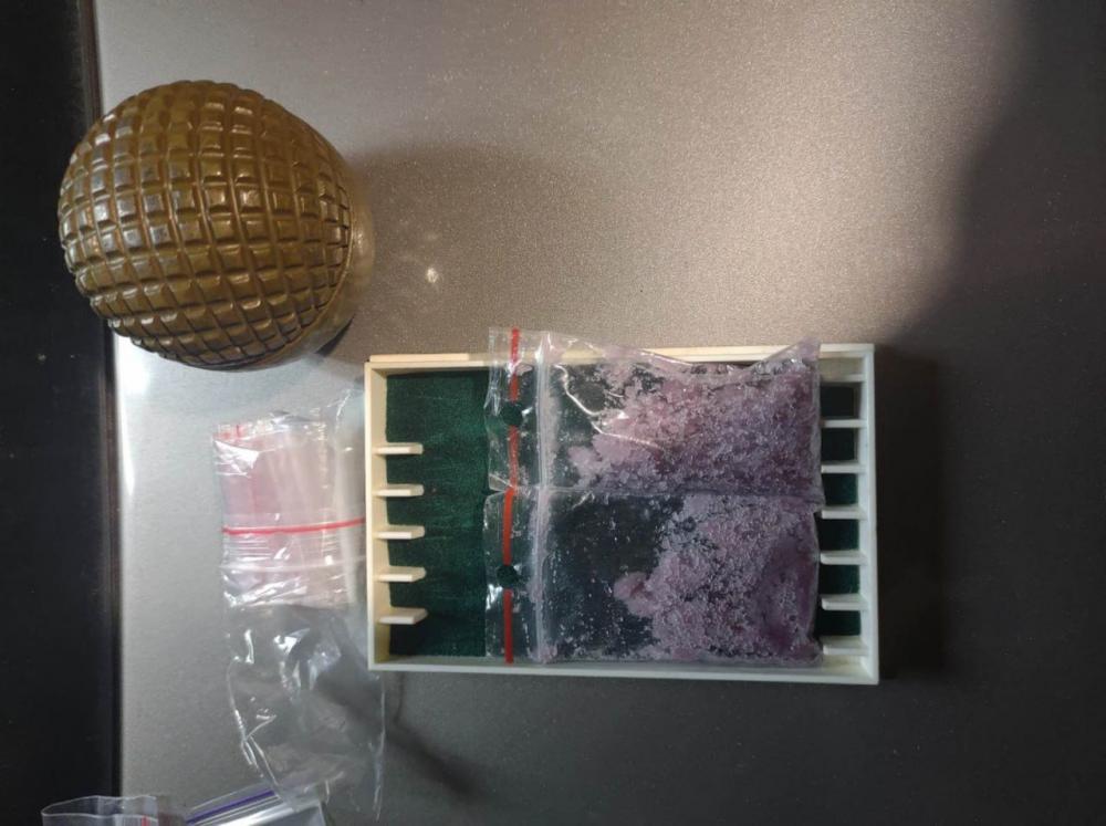 Під час обшуків за місцем проживання та у гаражному приміщенні наркозбувача правоохоронці вилучили марихуану, метамфетамін, патрони, корпус гранати РГО, грошові кошти та інші речові докази.