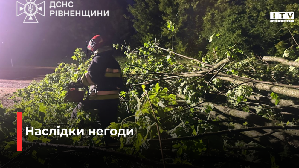 Як повідомили в ГУ ДСНС Рівненщини, унаслідок цього на автошляхах області повалені дерева перекрили рух транспорту.
