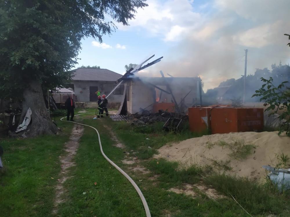 Прибувши на місце виклику вогнеборці встановили, що пожежа виникла у господарчій будівлі. На ліквідацію було подано вогнегасні речовини. Внаслідок пожежі вогнем знищено два мотоцикли, бензопилу, покриття та перекриття господарчої будівлі.